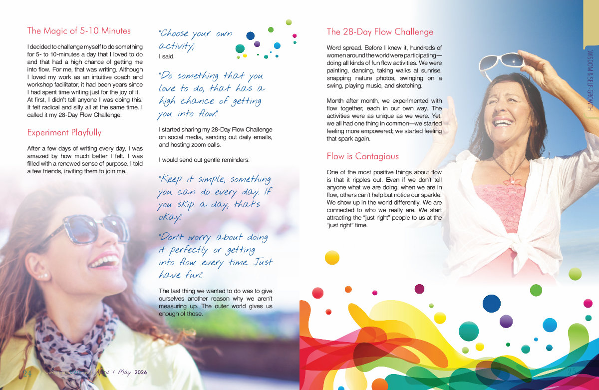I decided to challenge myself to do something for 5- to 10-minutes a day that I loved to do and that had a high chance of getting me into flow. For me, that was writing. Although I loved my work as an intuitive coach and workshop facilitator, it had been years since I had spent time writing just for the joy of it. At first, I didn’ t tell anyone I was doing this. It felt radical and silly all at the same time. I called it my 28-Day Flow Challenge.