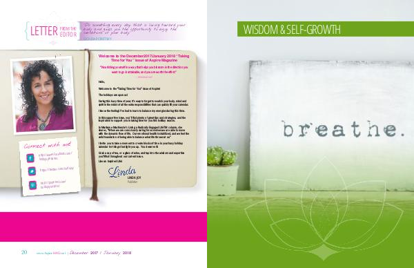 Welcome to the December2017 / January 2018“ Taking Time for You” issue of Aspire Magazine
