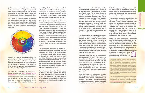 During a break in the workshop, I told Russ I thought my Enneagram personality type was consistent with Type 3. He kindly nodded in agreement. I recall telling him my reason for being in the world and going through everything I had up to that point, was to help people deepen their connection to the Divine. As the words came through me, I had no idea where they came from but somehow, I knew they were true. Something shifted sharply in my life at that precise moment.