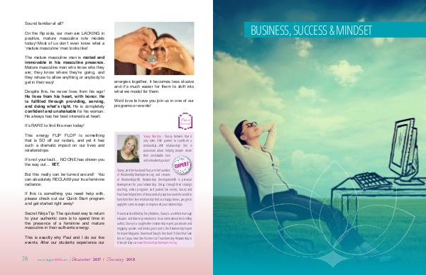 Secret Ninja Tip: The quickest way to return to your authentic core is to spend time in the presence of a feminine and mature masculine in their authentic energy.