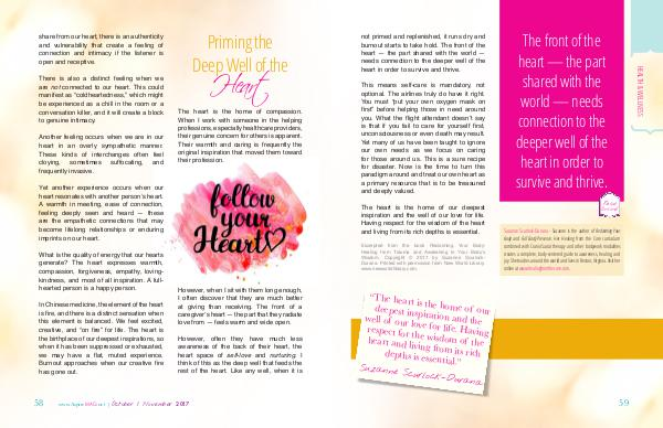 The heart is the home of compassion. When I work with someone in the helping professions, especially healthcare providers, their genuine concern for others is apparent. Their warmth and caring is frequently the original inspiration that moved them toward their profession.
