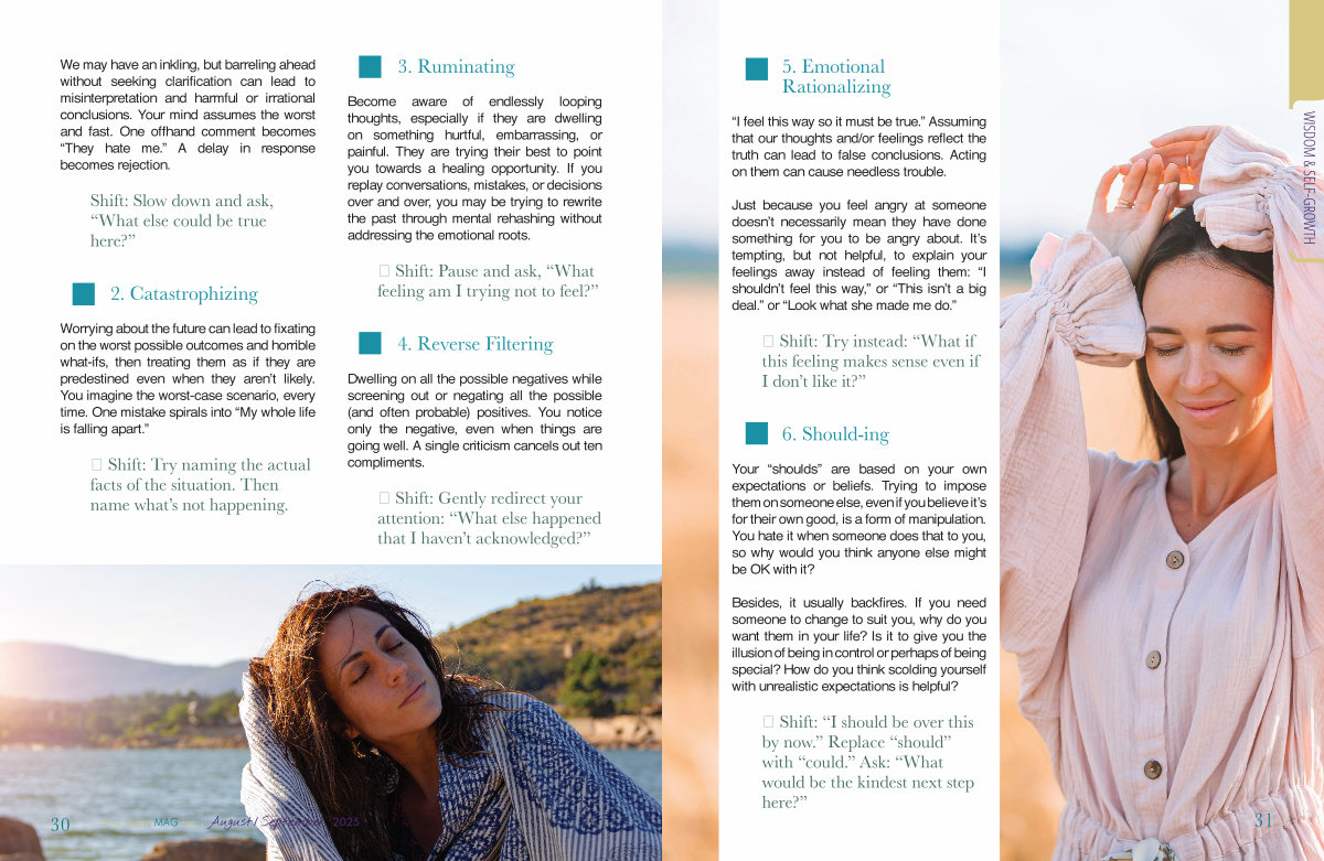 Become aware of endlessly looping thoughts, especially if they are dwelling on something hurtful, embarrassing, or painful. They are trying their best to point you towards a healing opportunity. If you replay conversations, mistakes, or decisions over and over, you may be trying to rewrite the past through mental rehashing without addressing the emotional roots.