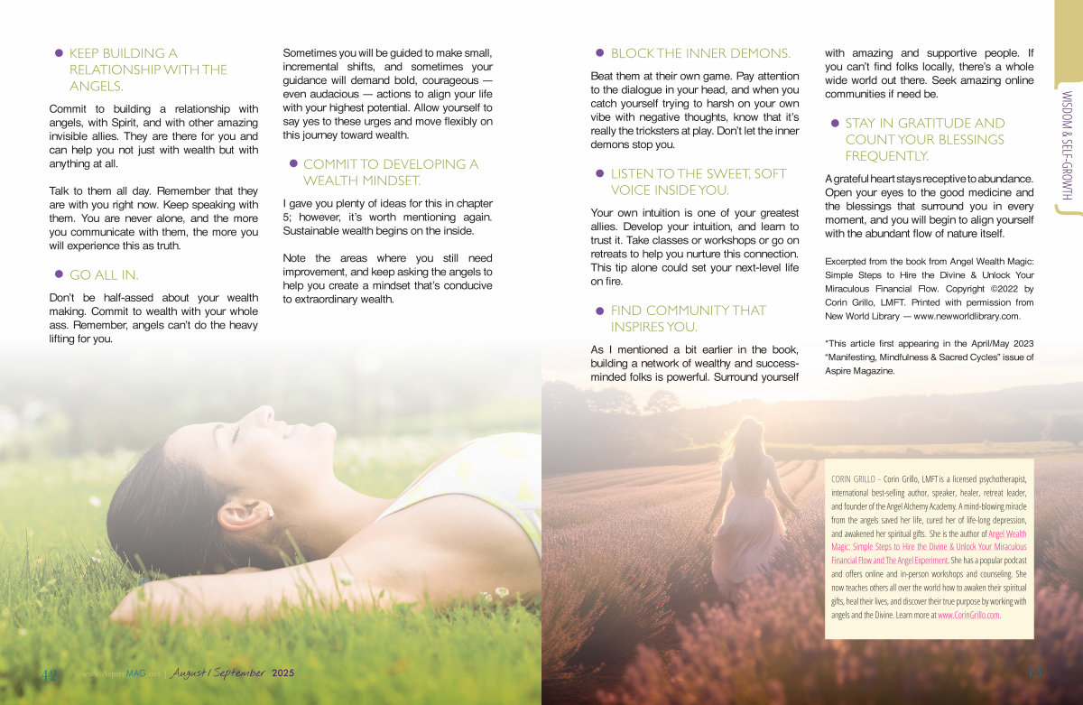 Excerpted from the book from Angel Wealth Magic: Simple Steps to Hire the Divine & Unlock Your Miraculous Financial Flow. Copyright © 2022 by Corin Grillo, LMFT. Printed with permission from New World Library— www. newworldlibrary. com.