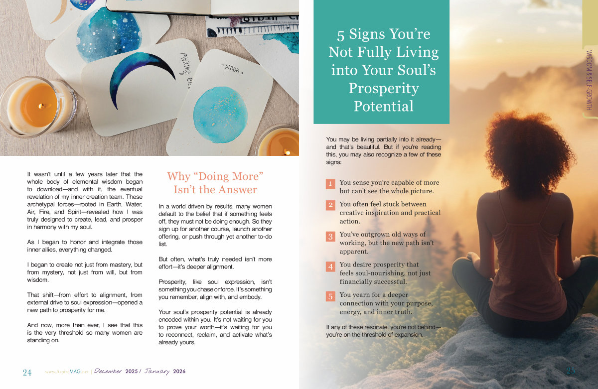 That shift— from effort to alignment, from external drive to soul expression— opened a new path to prosperity for me.