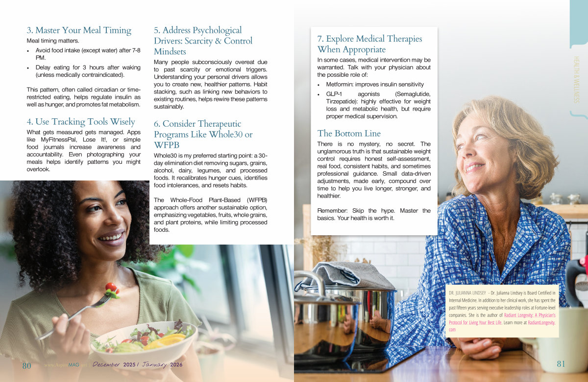 There is no mystery, no secret. The unglamorous truth is that sustainable weight control requires honest self-assessment, real food, consistent habits, and sometimes professional guidance. Small data-driven adjustments, made early, compound over time to help you live longer, stronger, and healthier.