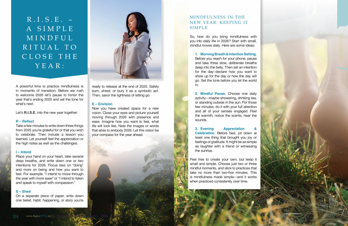 A powerful time to practice mindfulness is in moments of transition. Before we rush to welcome 2026 let’ s pause to honor the year that’ s ending 2025 and set the tone for what’ s next.