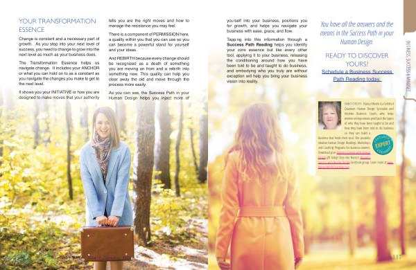 Tapping into this information through a Success Path Reading helps you identify your core essence but like every other tool , applying it to your business , releasing the conditioning around how you have been told to be and taught to do business , and embodying who you truly are without exception will help you bring your business vision into reality .