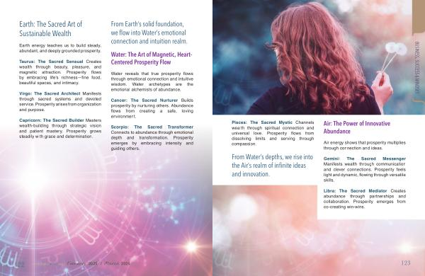 Taurus : The Sacred Sensual Creates wealth through beauty , pleasure , and magnetic attraction . Prosperity flows by embracing life ’ s richness — fine food , beautiful spaces , and intimacy .