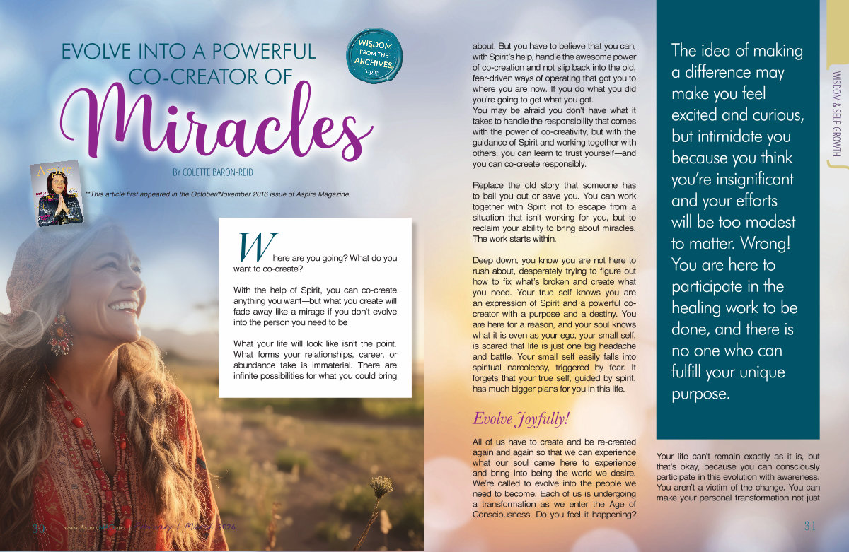 All of us have to create and be re-created again and again so that we can experience what our soul came here to experience and bring into being the world we desire. We’ re called to evolve into the people we need to become. Each of us is undergoing a transformation as we enter the Age of Consciousness. Do you feel it happening?