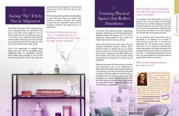 In tandem with setting intentions , expressing gratitude , identifying , and releasing abundance blocking beliefs , and saying “ no ” if it ’ s not in alignment , create spaces in your home that reflect abundance of what you desire .