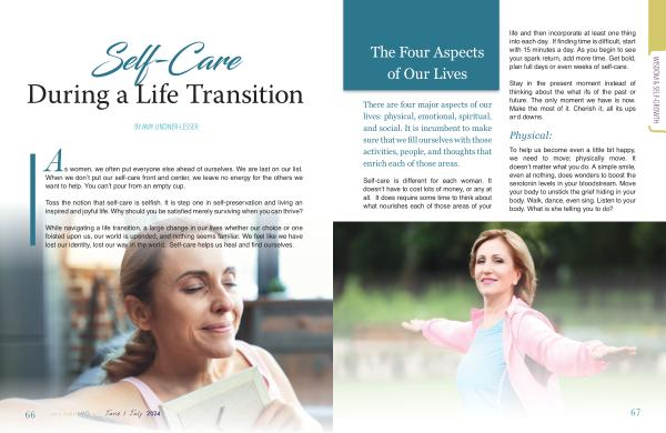 There are four major aspects of our lives : physical , emotional , spiritual , and social . It is incumbent to make sure that we fill ourselves with those activities , people , and thoughts that enrich each of those areas .