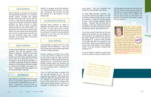 If you feel yourself bouncing up into your head for the answer , you are deciding on the information you gathered the way you have been taught to and not the way you are designed to . Learn to catch yourself at this step and tune into yourself to see how it feels . What is your authority saying ? How is your body feeling in your authority center ? Has your decision changed after sleeping on it ?