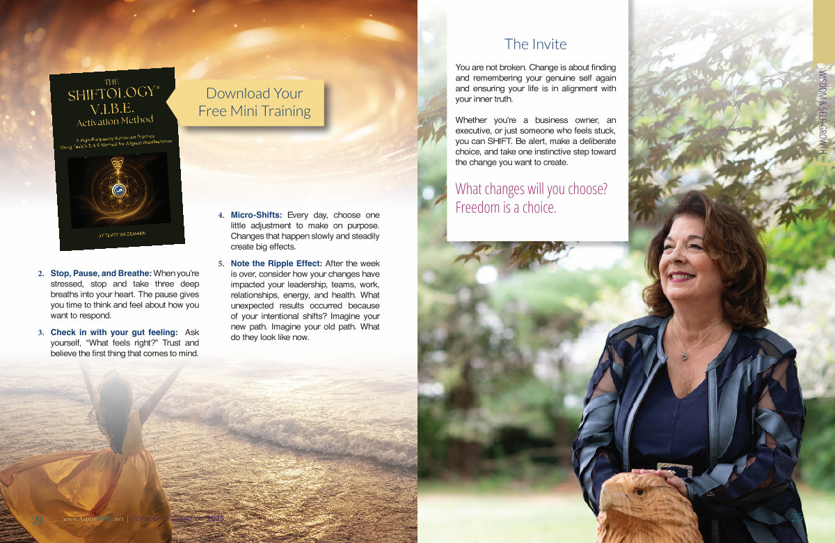 Whether you’ re a business owner, an executive, or just someone who feels stuck, you can SHIFT. Be alert, make a deliberate choice, and take one instinctive step toward the change you want to create.