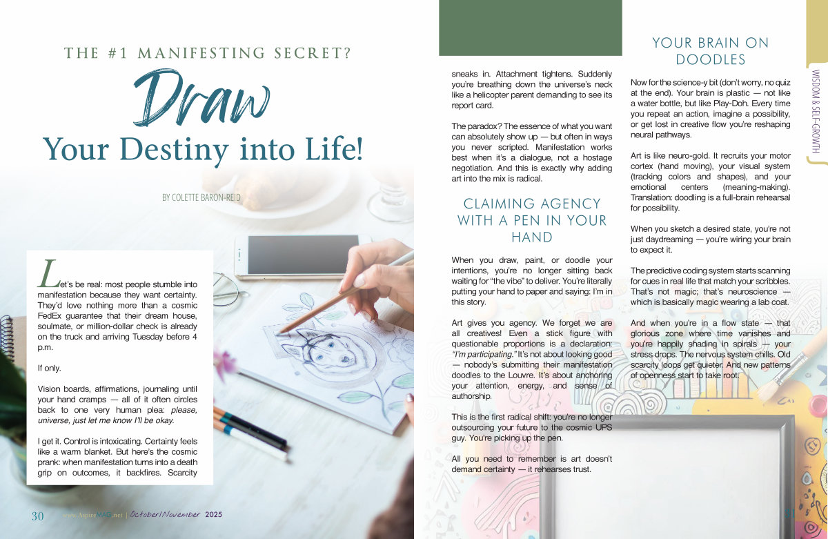 The paradox? The essence of what you want can absolutely show up— but often in ways you never scripted. Manifestation works best when it’ s a dialogue, not a hostage negotiation. And this is exactly why adding art into the mix is radical.