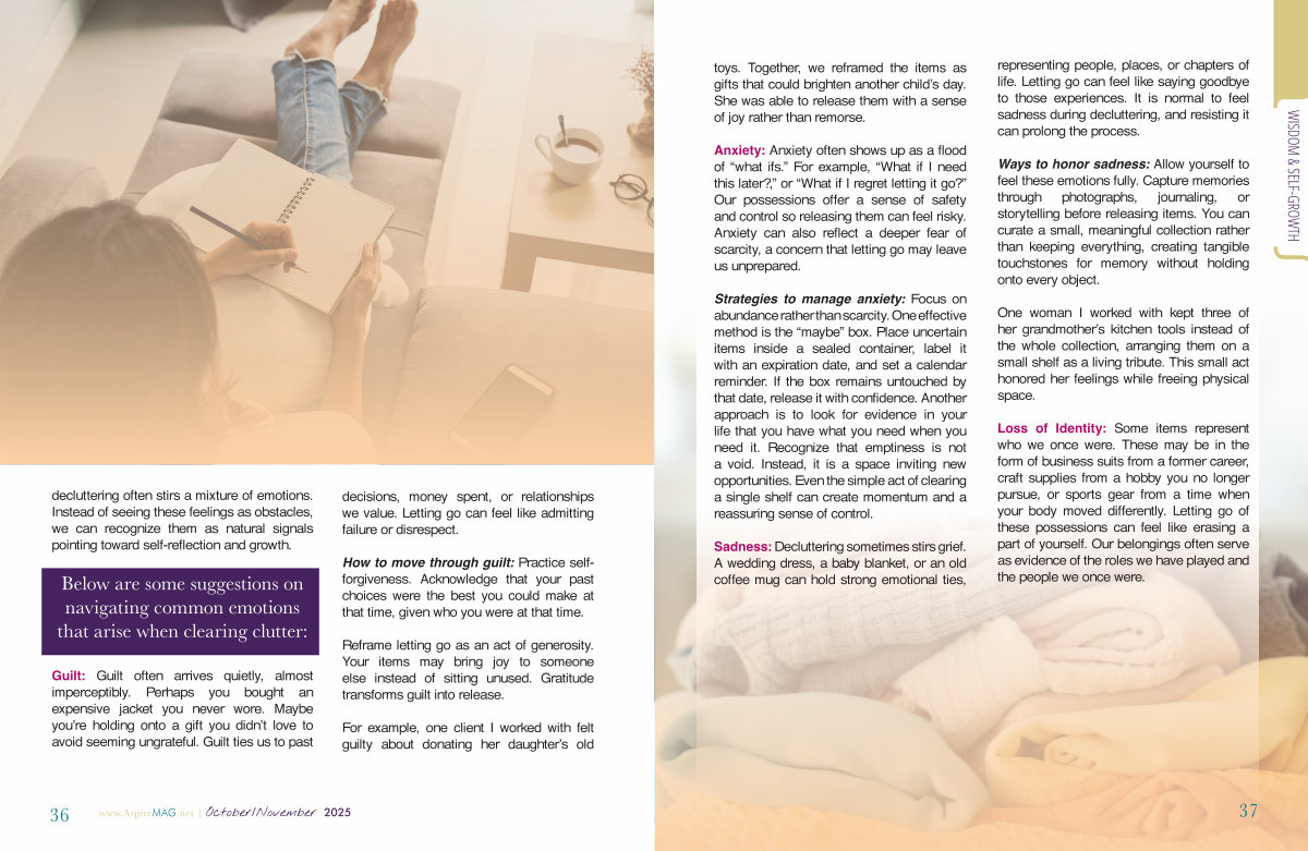 Below are some suggestions on navigating common emotions that arise when clearing clutter:
