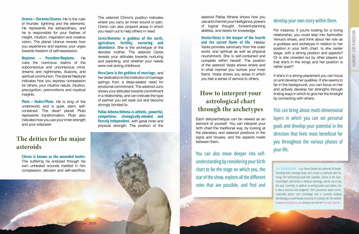LISA TENZIN-DOLMA – Lisa Tenzin-Dolma has authored 34 books, including three astrology books and a book co-authored with Kac Young. Her forthcoming book with Llewellyn, Stories in the Stars: Greek Myths and Deities in Western Astrology, will be out in July this year. Currently, in addition to writing books and articles, she is also a musician and songwriter. She’ s passionate about science( especially physics and cosmology) and is currently studying Astrobiology at a well-known university in Scotland, UK. Her website is www. tenzindolma. co. uk and you can visit her YouTube channel.