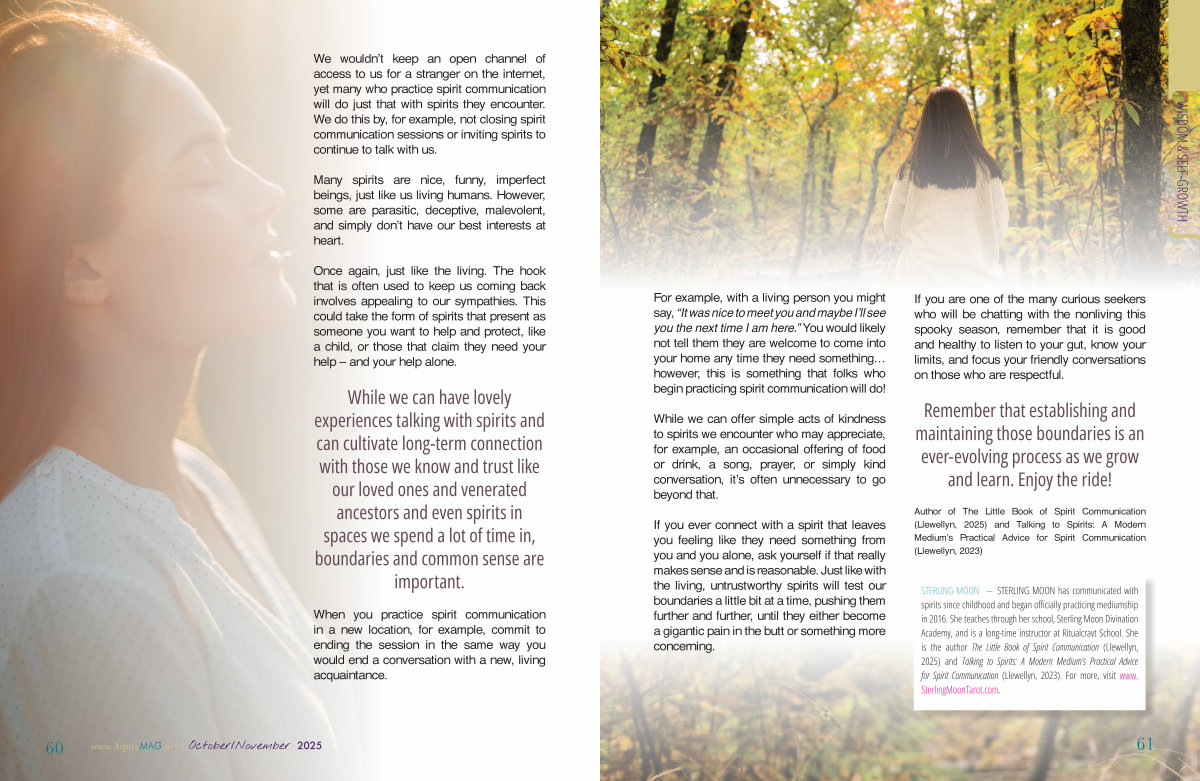 If you are one of the many curious seekers who will be chatting with the nonliving this spooky season, remember that it is good and healthy to listen to your gut, know your limits, and focus your friendly conversations on those who are respectful.