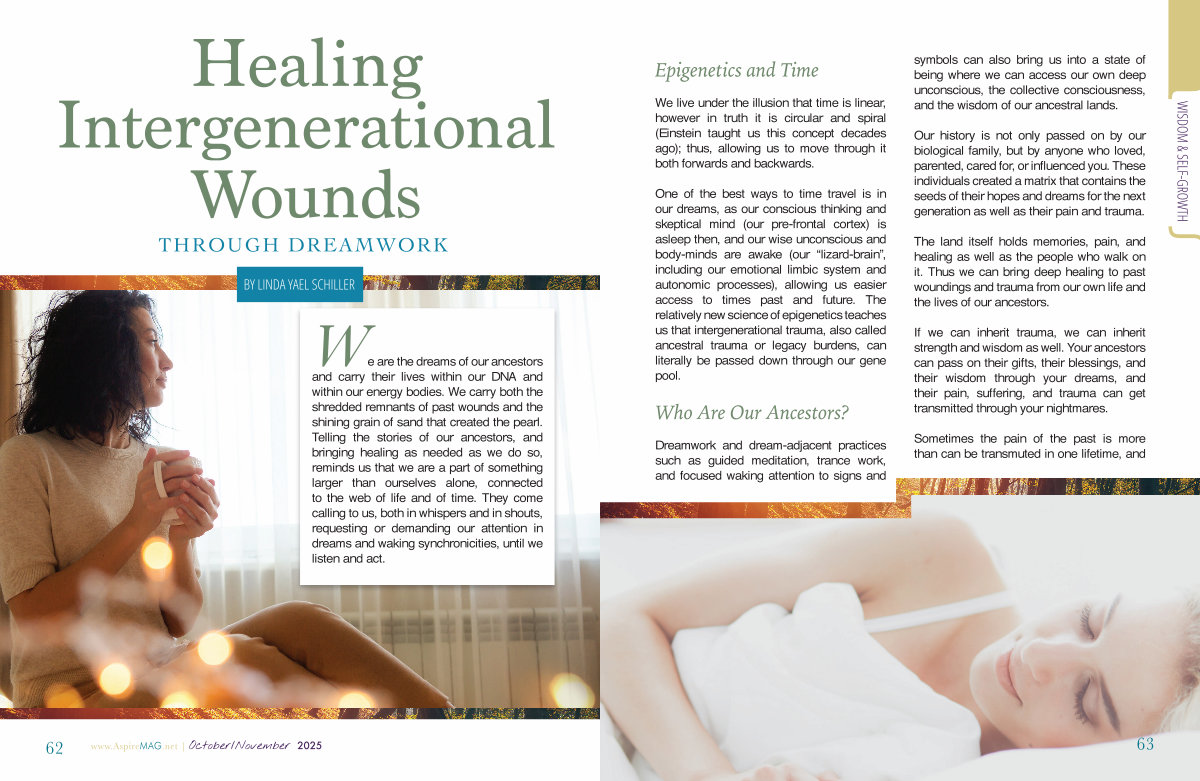 One of the best ways to time travel is in our dreams, as our conscious thinking and skeptical mind( our pre-frontal cortex) is asleep then, and our wise unconscious and body-minds are awake( our“ lizard-brain”, including our emotional limbic system and autonomic processes), allowing us easier access to times past and future. The relatively new science of epigenetics teaches us that intergenerational trauma, also called ancestral trauma or legacy burdens, can literally be passed down through our gene pool.