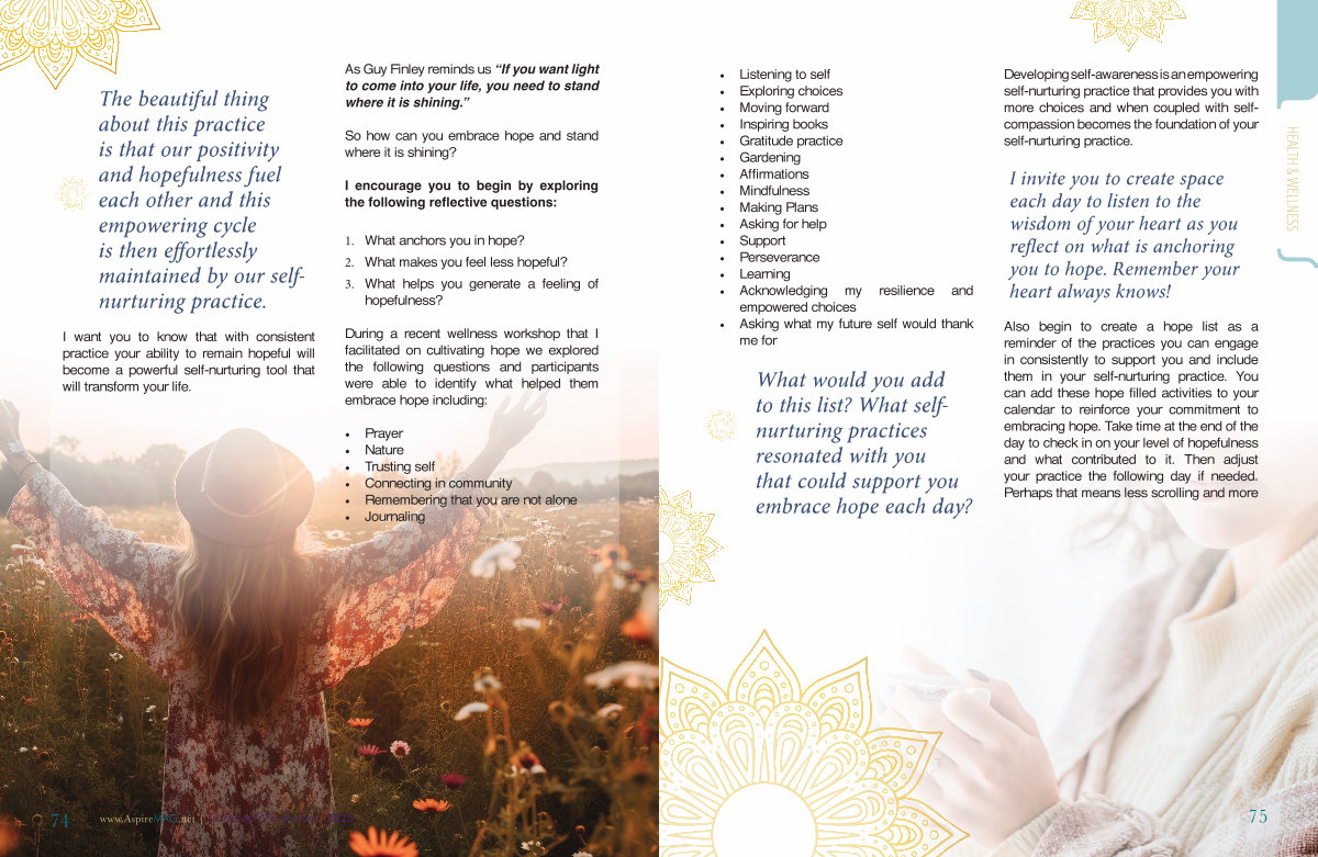 I want you to know that with consistent practice your ability to remain hopeful will become a powerful self-nurturing tool that will transform your life.