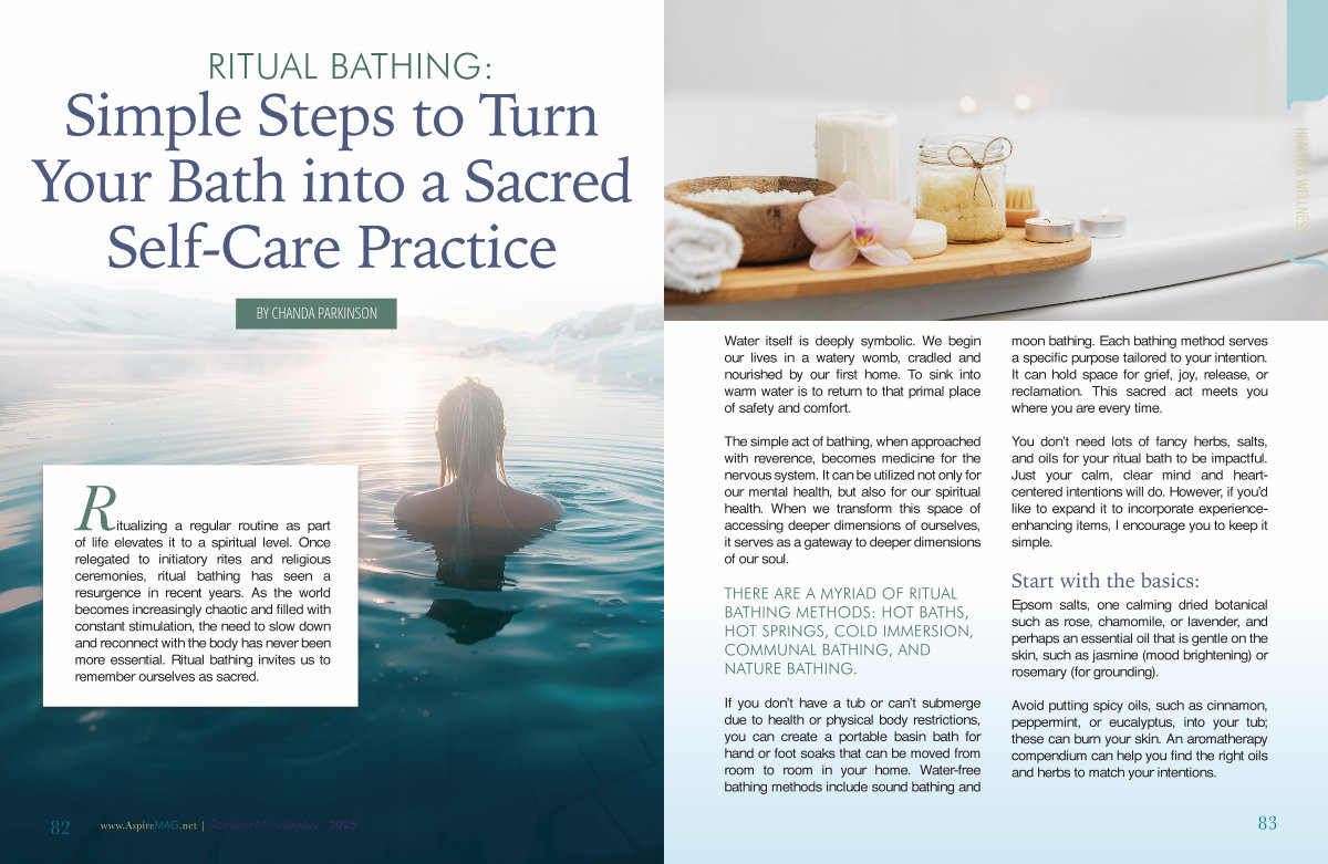 The simple act of bathing, when approached with reverence, becomes medicine for the nervous system. It can be utilized not only for our mental health, but also for our spiritual health. When we transform this space of accessing deeper dimensions of ourselves, it serves as a gateway to deeper dimensions of our soul.